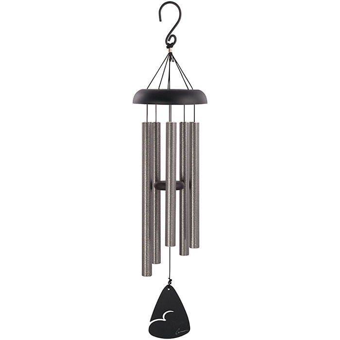 Our 30" Pewter Fleck Chime has 5 heavy walled, center pinned tubes that emits a soothing and serene sound. Durable powder coated finish, all aluminum construction, and strung with industrial cord. Includes an adjustable striker.